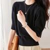 Women Sweaters Pullovers 2025 Summer Short Sleeve O-Neck Black White Knitted Sweater Women Tops Pullover JJ326