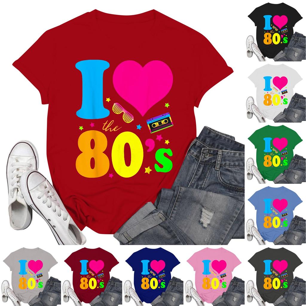 Women's Fashion Casual Days Of School Printed Short Sleeve Round Neck Pullover Tops