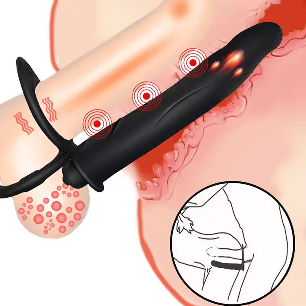 Erwachsenenbedarf Sexspielzeug Silikon Strap-on Penis Analplug Doppelte Penetration Dildo Vibrator mit Cockring Verzögerung Ejakulation Anus