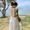 Damen Sommer rückenfrei Hängender Hals Neckholder Urlaub lange lockere Kleider