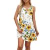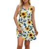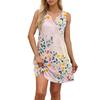 Damen Lässig Vintage Blumenmuster V-Ausschnitt Knopf Seitentasche Westenkleid