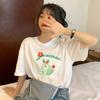 GMXIA Sommer Vintage Damen T-Shirt mit Aufdruck Reine Baumwolle Kurzarm T-Shirt Damen Ins Mode Locker Lässig mit Damenoberteil