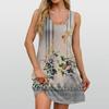 Damen Sommerkleid, lässig, quadratischer Ausschnitt, Blumendruck, ärmellos, mit Taschen