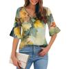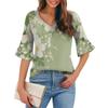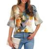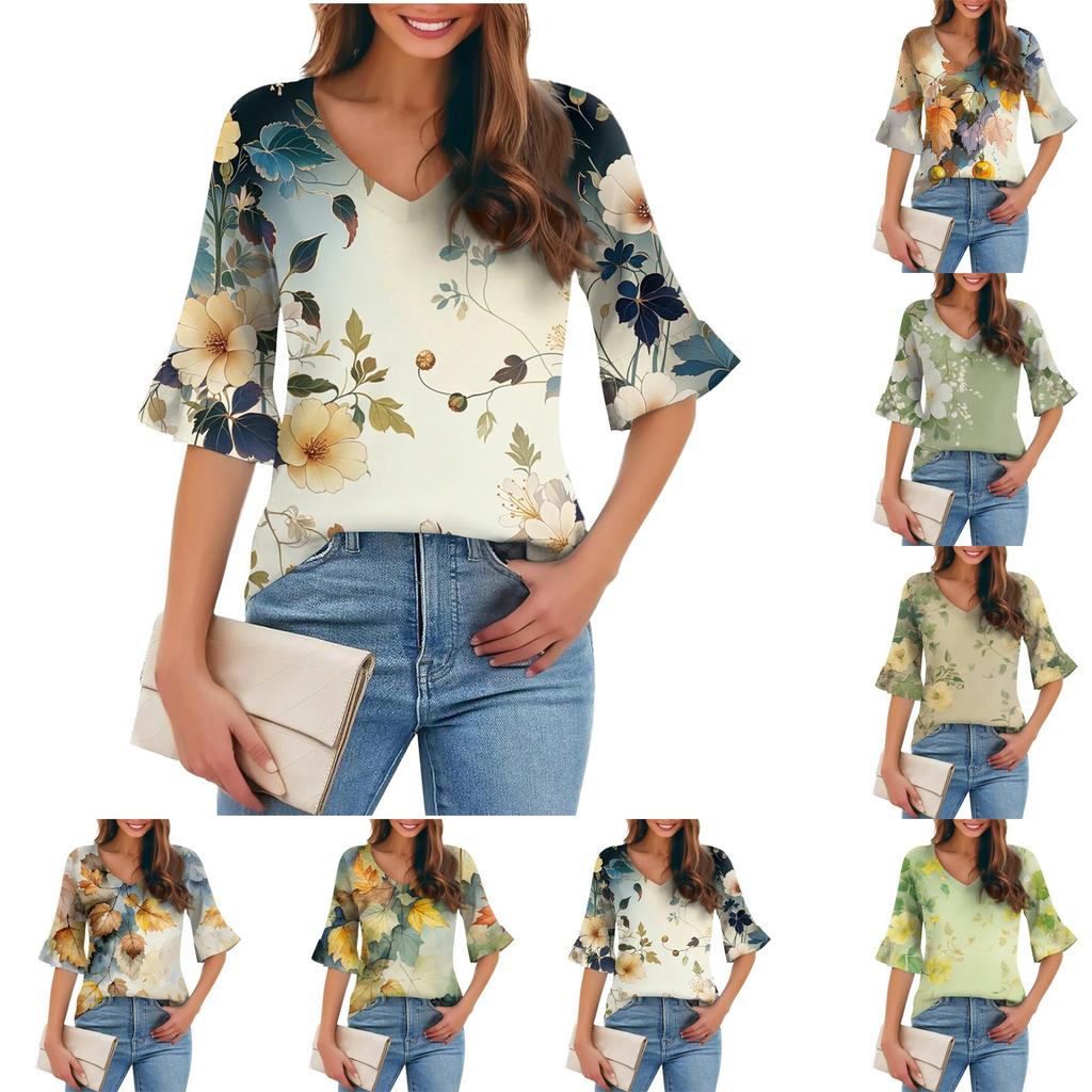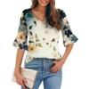 Damen Casual Fashion V-Ausschnitt Pullover Lose Pendeln Floral Fünf-Punkt-Ärmel T-Shirt Top