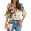 Damen Casual Fashion V-Ausschnitt Pullover Lose Pendeln Blumen Fünf-Punkt-Ärmel T-Shirt Top