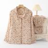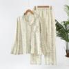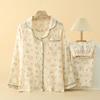 Damenpyjama, Baumwollgarn Damen Frühling und Herbst Langärmelig Locker Dünn Hausanzug Baumwollanzug