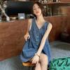Biyaby Ärmelloses Trägerkleid Damen Sommer Einreihig Taschen Jeanskleider Frau Koreanischer Stil Lockeres A-Linien-Minikleid