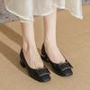 Soft sole soft leather medium heel single shoes women's versatile comfortable thick heel shallow mouth evening breeze gentle new