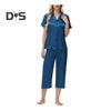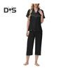 Luxuriöser Komfort: Verwöhnen Sie sich mit der exquisiten Weichheit dieses zweiteiligen Pyjama-Sets für Damen aus 100 % Polyesterfaser. Der hochwertige Stoff aus Seidenimitat bietet eine glatte Oberfläche und eine sanfte Haptik und sorgt so für ein hautfreundliches und angenehmes Tragegefühl.
