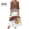 Elegantes V-Ausschnitt-Design: Umarmen Sie Raffinesse mit dem langen Kleid mit V-Ausschnitt und lockerer Schnittführung dieses Kleides. Das Knopfdesign verleiht einen Hauch von Flair und sorgt gleichzeitig für einen schlankmachenden Effekt, sodass es sowohl schlicht als auch modisch für jeden Anlass ist.