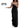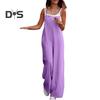 Damen-Jumpsuit, kragenlos, Spaghettiträger, rückenfrei, ärmellos, locker, weites Bein, volle Länge, Overall, lässiges Alltagsoutfit