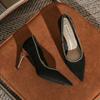 Sexy fashion dinner party high heels temperament beaded black pointed stiletto suede single shoes women's versatile