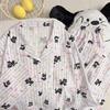 Cartoon Süß Niedlich Buchstaben Hunde Print Damen Pyjama Reverskragen Karomuster Koreanisches Design Pyjama Set für Damen Neue Frühling Nachtwäsche