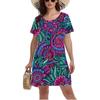 Retro 3D Buntes Druckkleid Damen Sommer Kurzarm Rundhals Freizeitkleid Große Größe Damen Sommerkleid Vestidos