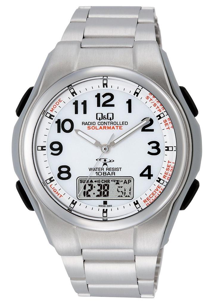 [Citizen Q&Q] Uhr Analog Radio Solar Wasserdicht Datum Metallband MD02-204 Herren Weiß