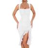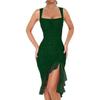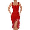 Women's Square Collar Sleeveless Pleated Double Mesh Stitching Mid-length Dress