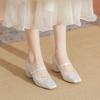 Single shoes women's skirt pearl satin jacquard word with square head Mary Jane shoes women