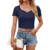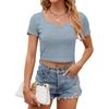 Women's Summer T-shirt Short Sleeve Vest Fashion Square Collar Top
