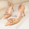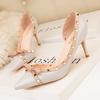 Skinny women's shoes thin heels high heels shallow mouth pointed side hollow rivets single shoes