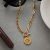 Vintage Queen Head Münze Titanstahl Armband Vergoldet Echter Gold O Mode Runder Anhänger Edelstahl Schmuck