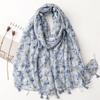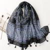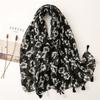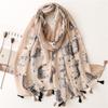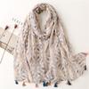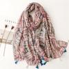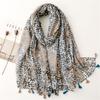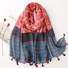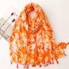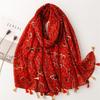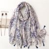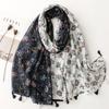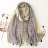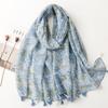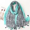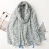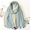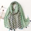 Bali Yarn Cotton-Linen Scarf: Fresh Solid Color, Fruit Green & Bright Yellow Leaf Print with Tassel Detail