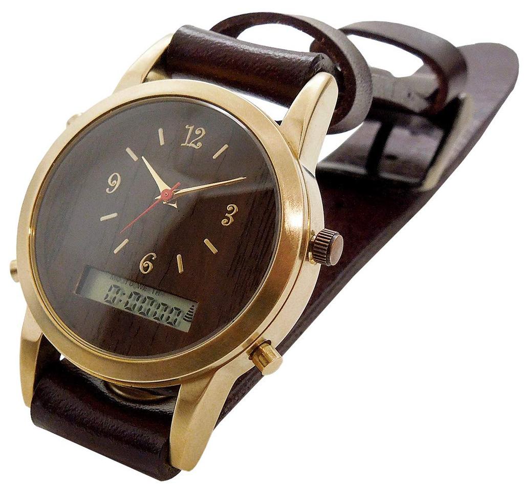 Made in Japan Watch Woodgrain Digital Quartz Calendar Day of the Week Alarm Size Circumference Ana-Digi (M (Arm 14cm~18cm), Brown)