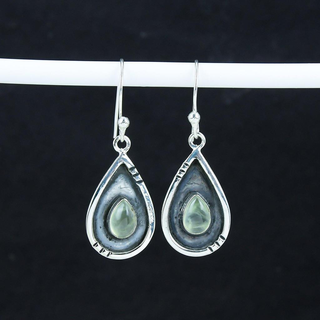 Natürliche Prehnit Edelstein Ohrringe, 925 Sterlingsilber Ohrring, Handgefertigter Boho Silber Schmuck Hängeohrringe, Jubiläumsgeschenk