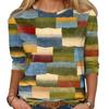 Damen Frühling Herbst Quadratisches Muster Totem Langarm T-Shirt Rundhals Schlankmachendes T-Shirt Digitaldruck Shirt