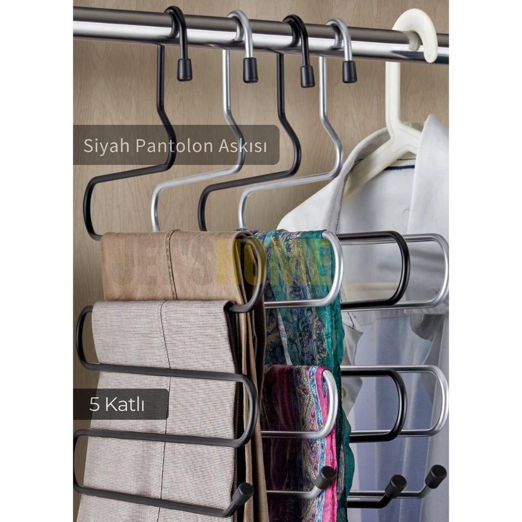 Paslanmaz 5 katlı pantolon askıları, dolap içlerinde düzeni sağlamak ve pantolonlarınızı kırışmadan saklamak için oldukça kullanışlı bir çözümdür.