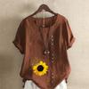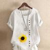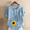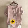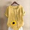 Damenmode Sonnenblumen-Print Kurzarm-T-Shirt Locker Baumwollhemd Lässig Locker Sommerbluse Tops Übergröße