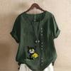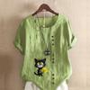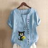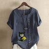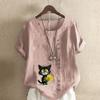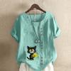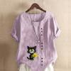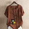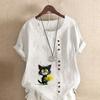 Damenmode Schwarze Katze Blumenmuster Kurzarm T-Shirt Locker Baumwollshirt Lässige Lockere Sommerbluse Übergröße Tops