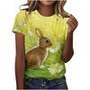Süßes T-Shirt mit Kaninchen-Muster für Damen, lustiges 3D-Tier-Druck-T-Shirt, lässiges Rundhals-Oberteil mit kurzen Ärmeln, lockere T-Shirts für den Sommer