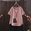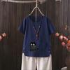 Floral Vintage Linen Tee, Women's Summer Graphic Shirt, Boho Style Crew Neck, S-4XL