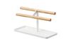 Ein Zubehörständer, der zur Aufbewahrung von Halsketten, Ringen, Uhren usw. verwendet werden kann. während sie wie Innendekoration dekoriert werden. Ein warmes skandinavisches Design, das Naturholz und weißen Stahl kombiniert.