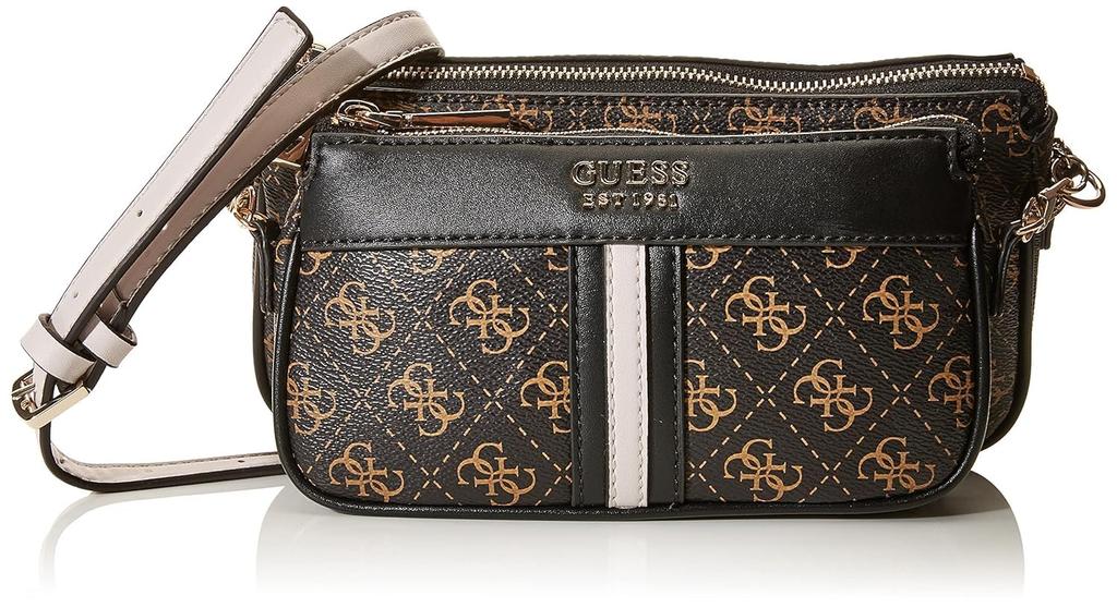 GUESS Kasinta Doppel-Reißverschlusstasche Braun Multi Crossbody,