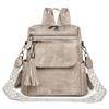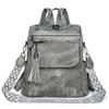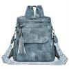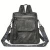 Retro Damen Rucksack Geldbörse - Synthetisches Leder, Magnetverschluss, Abnehmbare Träger, Quastenakzent, Braun/Grauer Denim-Stil, Vielseitige Umhängetasche