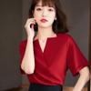 Rotes kurzärmeliges Chiffonhemd für Damen im Sommer im neuen Stil, modisches V-Ausschnitt-Oberteil