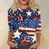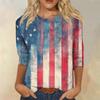 Damenmode Lässiges Rundhals-T-Shirt mit 3/4-Ärmeln und lockerem Aufdruck