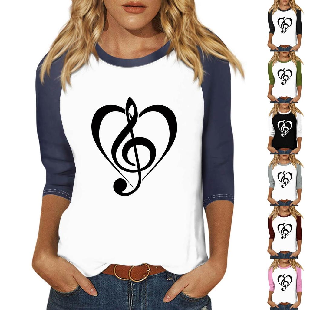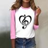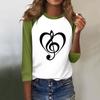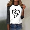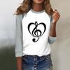 Damenmode Lässiges T-Shirt O-Ausschnitt Siebenärmel Bedrucktes Knopf-Top