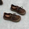 Johnature Retro Echtleder Schnürschuhe Damenschuhe Lässige flache Schuhe aus Rindsleder mit runder Spitze