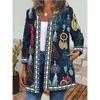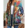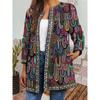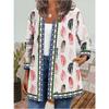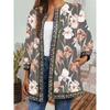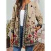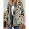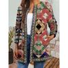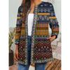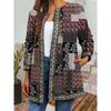 GMXIA Herbst Winter Vintage Ethnischer Stil Druck Übergröße Jacke Strickjacke Damenbekleidung