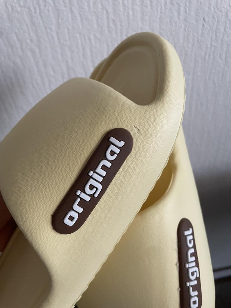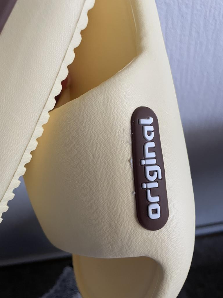 Auf dem Foto ist eine hohe Sohle zu sehen, sie wurde jedoch mit einer dünnen Sohle geliefert.. Die Qualität ist mittelmäßig... unter dem Logo befindet sich Kleber, der nicht entfernt werden kann, um eine Beschädigung des Produkts zu vermeiden...