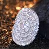 Huitan Full Paved CZ Oval Shape Women Wedding Rings High-quality Color Temperament Elegant Lady Finger Ring Party Jewelry