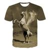 Herren T-Shirt mit Pferde-Grafik 3D Digitaldruck Sport und Stretch Kurzarm T-Shirt Sommer Outdoor-Aktivitäten