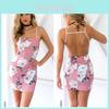 Damen Sexy Lässig Zuhause Klein Blumig Camisole Kleid Spaghetti Träger Ärmellos Sommer Strand Bequem Minirock