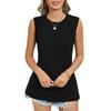 Damen Sommer Einfarbig Top Rundhals Ärmelloses Lose Weste T-Shirt Bluse