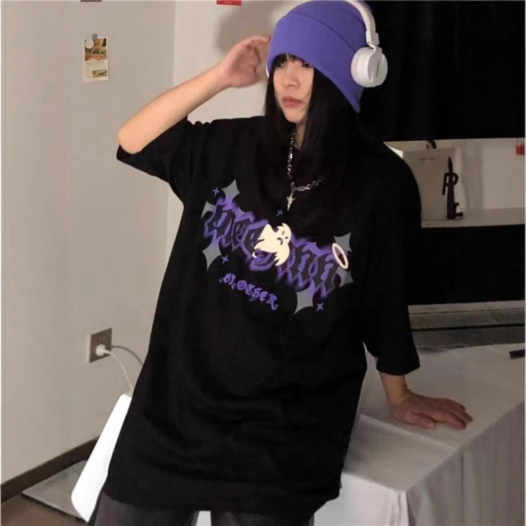 Amerikanischer Hip Hop High Street T-Shirts Mode Sommer Trendig Retro Parodie Bedrucktes Kurzarm T-Shirt lässig Locker schwarz y2k Oberteile