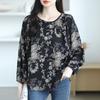 Chiffon-Shirt mit Blumenmuster für Damen, langärmelig, lockere Passform, schlankmachendes, bauchbedeckendes Anti-Aging-Top für Damen