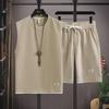 Trendy Waffel Zweiteiliges Casual Set für Herren - Kurzarmweste & Shorts