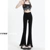 Damen Schwarze Schlagjeans mit Hohem Bund - 2024 Frühling/Herbst Elastische Slim Fit mit Offener Kante